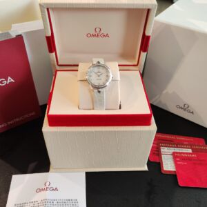 OMEGA 碟飛系列 全新 原鑲鑽圈 白色珍珠母貝面盤 錶徑27.4mm 自動上鍊~原廠盒單 國內AD