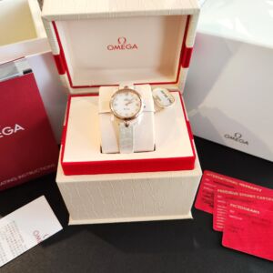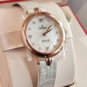 OMEGA 碟飛系列 全新 18K玫瑰金 白色珍珠母貝面盤 錶徑27.4mm 自動上鍊~原廠盒單 國內AD