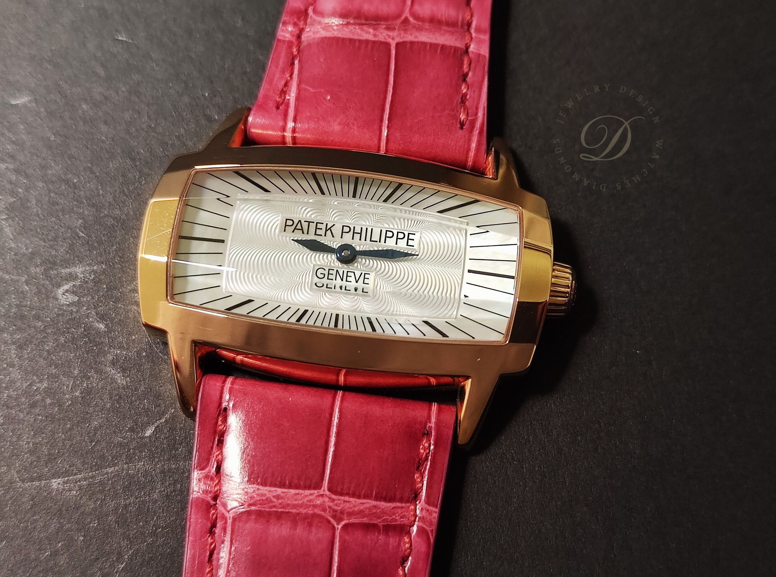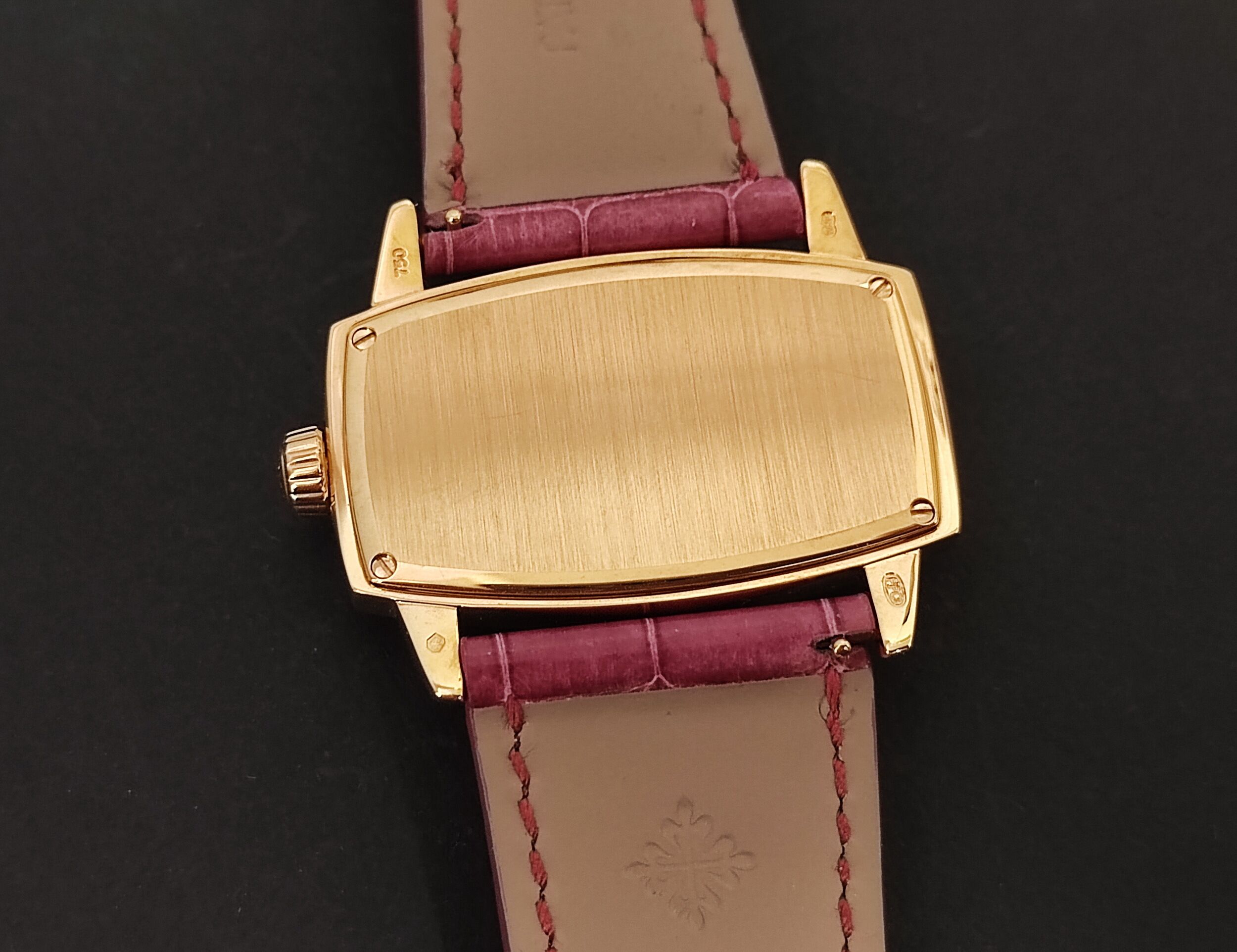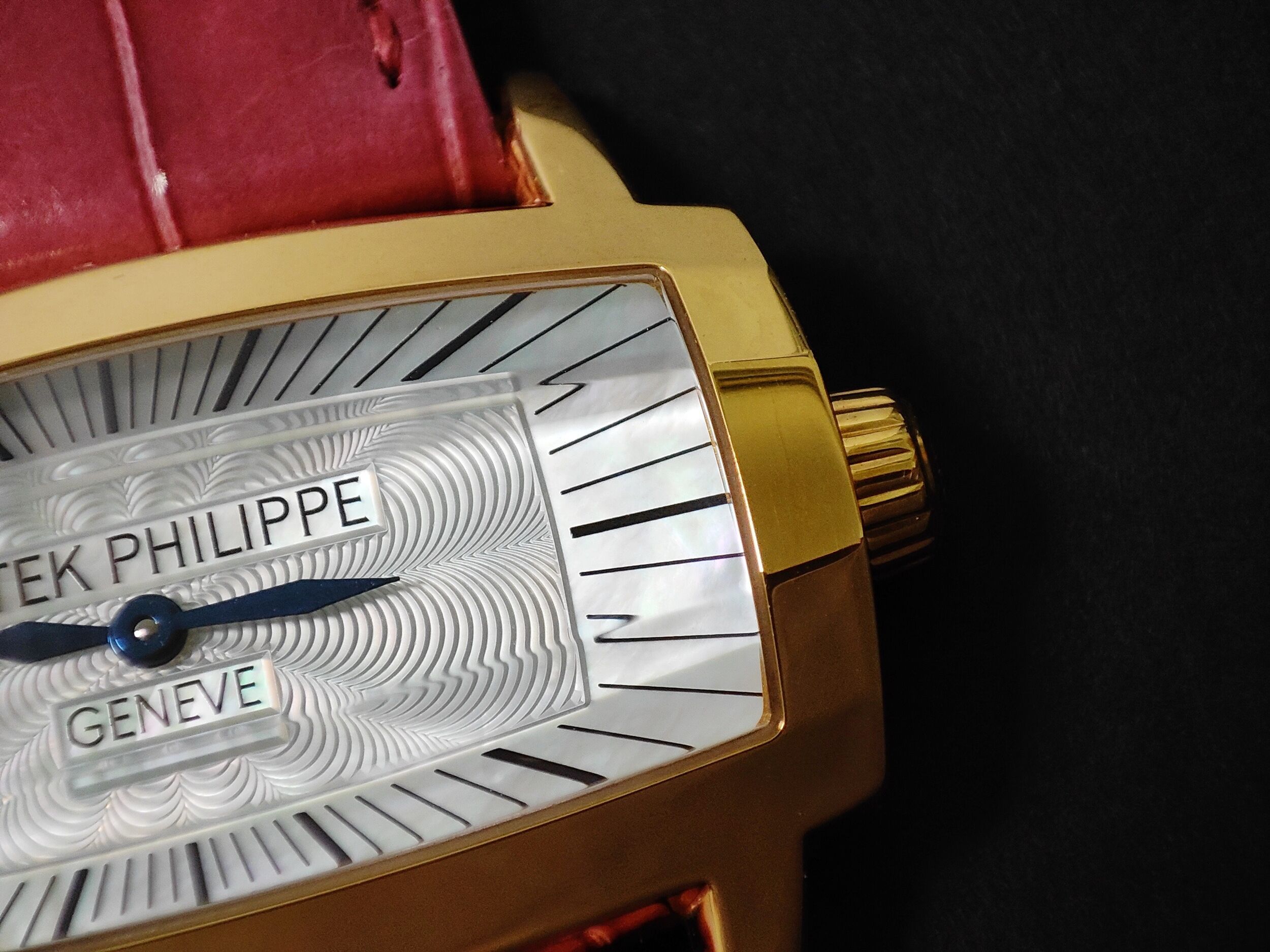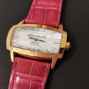 PP 百達翡麗 4980R 玫瑰金 白色珍珠母貝 雕花面盤 石英機芯 長方形錶殼~原廠盒單 未使用品