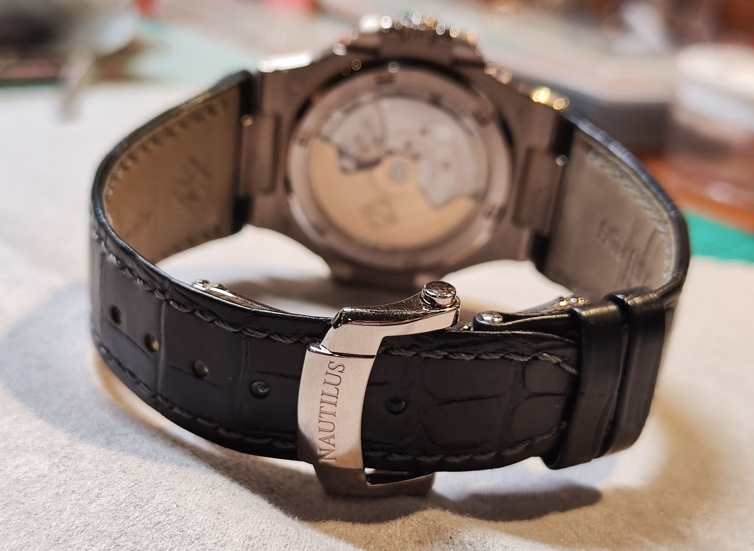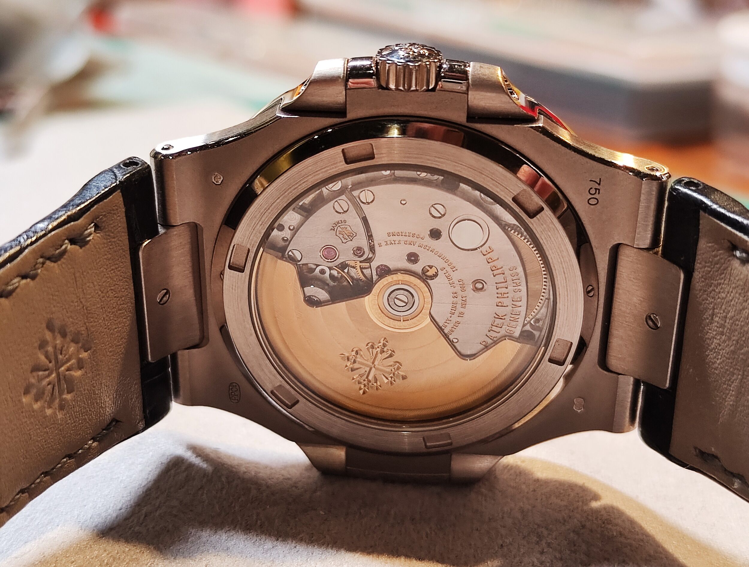 透明底蓋設計 原廠黑色鱷魚皮錶帶 原廠白K金摺疊扣