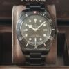 自動上鍊機芯 黑色碳纖維圖案面盤 藍色刻度秒針 時間 日期顯示