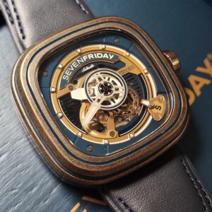 SEVENFRIDAY 全新 PS1/04 黃銅錶殼 全球限量款 海軍藍 鏤空面盤 自動上鍊 復古風格~原廠盒單 2025AD