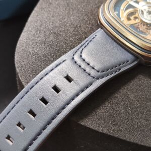 自動上鍊機芯 海軍藍 鏤空面盤 透視擺輪運作 時間顯示