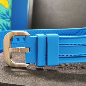 底蓋特殊圖樣 內建防偽晶片 原廠藍色橡膠錶帶 原廠錶扣
