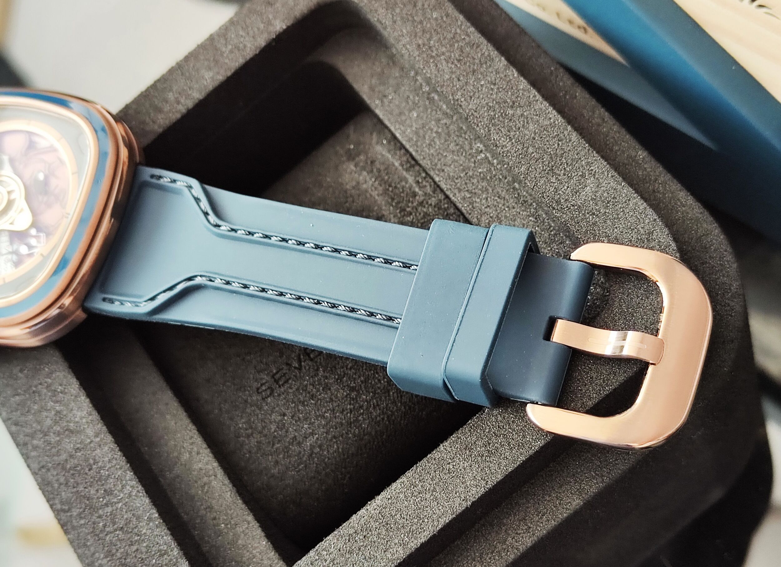 底蓋特殊圖樣 內建防偽晶片 原廠藍色橡膠錶帶 原廠錶扣